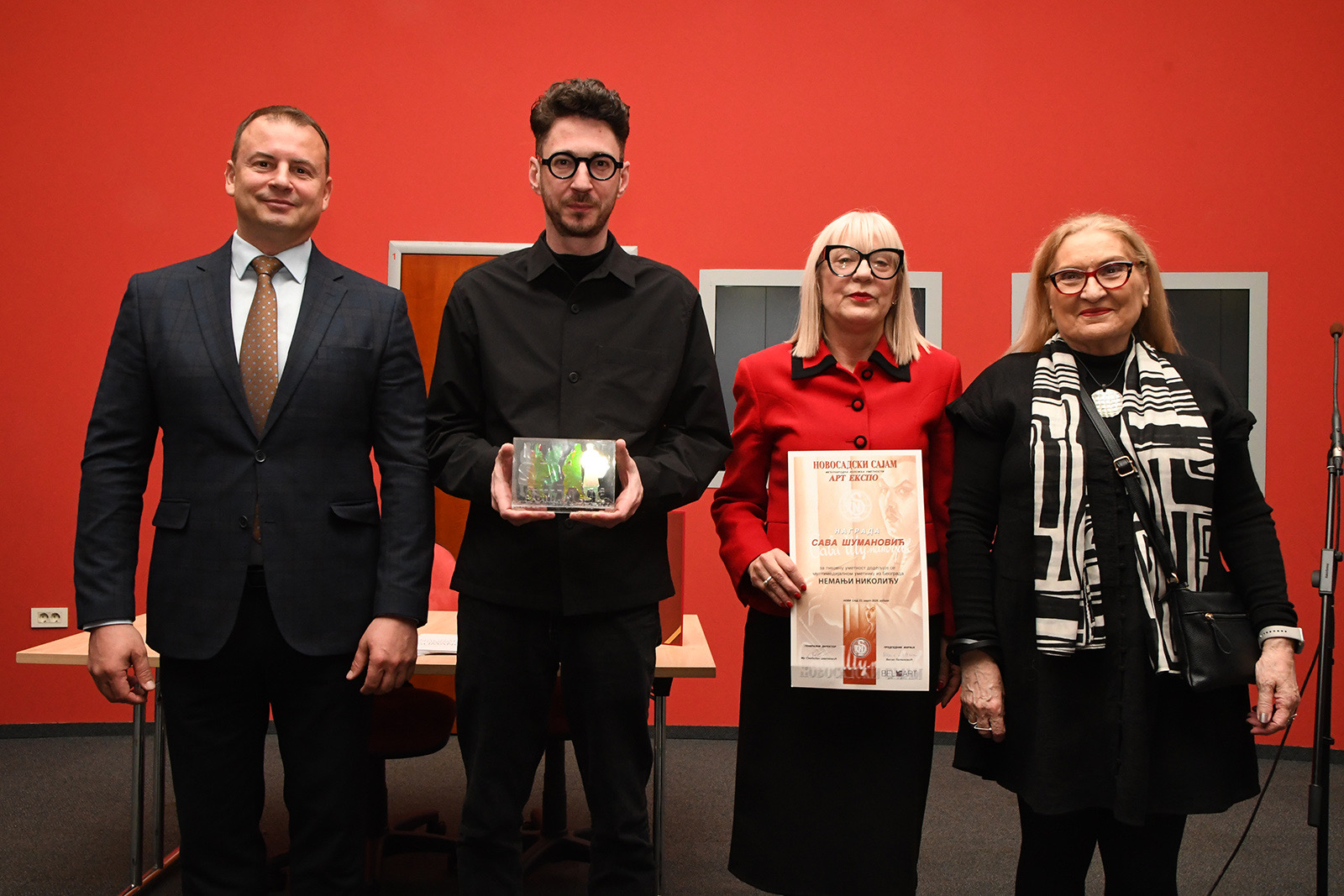 The "Sava Šumanović" Award, awarded for the 28th time, for achievements in fine arts, was presented to Nemanja Nikolić, a multimedia artist from Belgrade, at the jubilee 30th international exhibition "Art Expo".