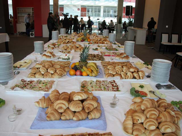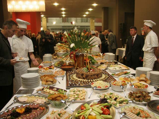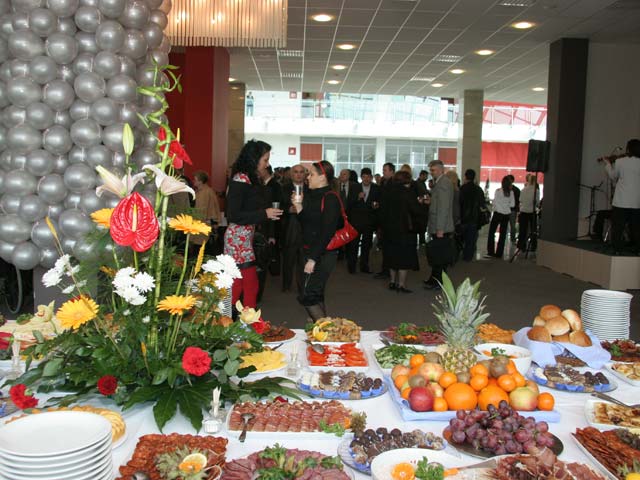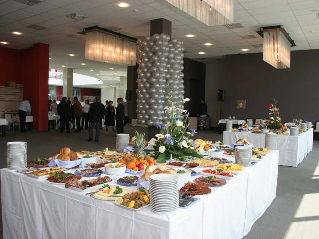 Restoran & ugostiteljstvo Kapacitet restorana, opcije posluženja i keteringa, primeri menija i kontakt za rezervacije. Restoran – izgled & organizacija prostora Sastavni deo Kongresnog centra je restoran sa 280 sedišta. Pri organizovanju švedskog stola i koktela restoran može da primi do 800 gostiju, dok se u prizemlju Aule može poslužiti još ~600 osoba. Kombinacijom ova dva nivoa, moguće je prirediti koktele, promocije i svečanosti za do 1.500 ljudi. Kapacitet i formati posluženja Sedenje (restoran) Do 280 mesta uz kompletan servis i protokol. Švedski sto / koktel Do 800 gostiju u restoranu; Aulina zona + 600. Max kombinacija Restoran + Aula do 1.500 gostiju (dva nivoa). Primeri menija Coffee break Kafa/čaj, voda, sok Mikro peciva i kroasani Voćni zalogaji Biznis ručak Supa/čorba dana Glavno jelo (piletina/riba/vege) Dezert & voda Svečana večera Hladno predjelo Glavno jelo (crveno/belo meso ili vege) Dezert, kafa, vino * Meniji se prilagođavaju zahtevima (vege, posno, bez glutena, halal…). Navedeni su primeri za brzu orijentaciju. Ketering i ugostiteljske opcije Coffee break Brza pauza između sesija: napici, peciva, voće. Radni ručak Efikasan meni u pauzi programa. Kokteli Stojeći format, finger food & piće dobrodošlice. Banketi Svečani formati sa više serviranih tokova. Kuhinja & tim Chef kuhinje Tim sa iskustvom u velikim protokolarnim događajima i banketima. Sezonski sastojci Meni se oslanja na sveže, sezonske namirnice i lokalne dobavljače. Dijetalni režimi Uigrana priprema posebnih režima ishrane (vege, bez glutena…). Tlocrt restorana (PDF) Preuzmi PDF Vaš pregledač ne podržava PDF prikaz. Preuzmite PDF . Fotografije postavki Rezervacije i ponude Pošaljite nam kratak opis događaja (termin, okviran broj gostiju, željeni format posluženja) i tim će vam pripremiti ponudu sa predlogom menija i logistikom. Kongresni centar „Master“ – Restoran Hajduk Veljkova 11, 21137 Novi Sad Tel: 021 483 07 77, 483 07 78 E-pošta: kongresnicentar@sajam.net