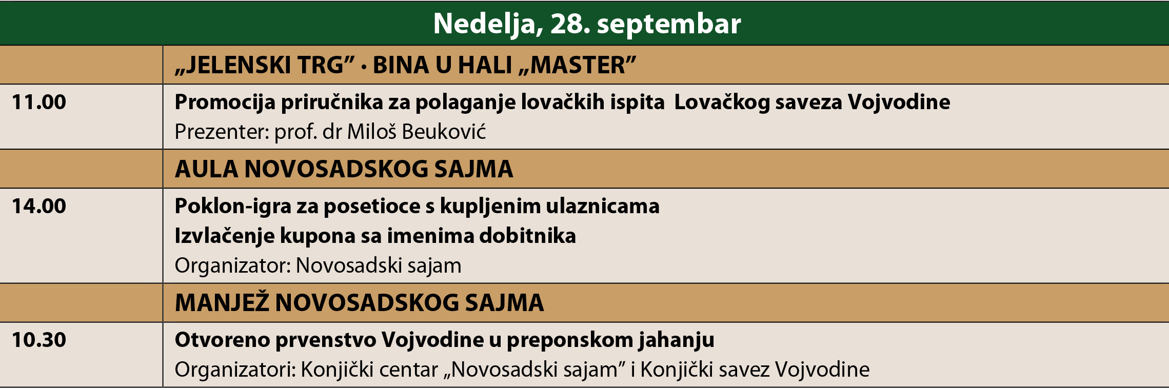 Poslednji dan Sajma lova i ribolova i Sajma ekologije: kapije su otvorene do 17h, ulaznice su i kuponi za poklon-igru čije izvlačenje je zakazano u 14h. Radno vreme Sajma lova i ribolova i Sajma ekologije za posetioce je od 10 do 17 časova.Pojedinačne ulaznice za Sajam lova i ribolova i Sajam ekologije staju 550 dinara, dok su u kolektivnim posetama 450 dinara po osobi. Ulaznice za kolektivne posete đaka i studenata, decu od 7 do 14 godina i penzionere takođe koštaju 450 dinara. Za decu do 7 godina ulaz se ne naplaćuje.Za sve posetioce sa kupljenim ulaznicama tu je Poklon-igra. Capriolo, Bačka Topola će darovati bicikl i Grof MBM, Požarevac koji je za posetioce pripremio lokator, lovačke pantalone, duks Browning i majicu kratkih rukava Browning. Poklon-igri se pridružio i Antenall, Zemun. Darovaće Hikvision auto-kameru B1 i Hikmicro jaknu. Zastava oružje poklanja trofejni nož M48, hromiran i graviran, na drvenom postolju.Izvlačenje kupona sa imenima srećnih posetilaca biće danas, poslednjeg dana priredbi, u nedelju, 28. septembra, od 14 časova. Prethodna vest Bogata ponuda štapova Sledeća vest Ribe se love, ribe se čuvaju