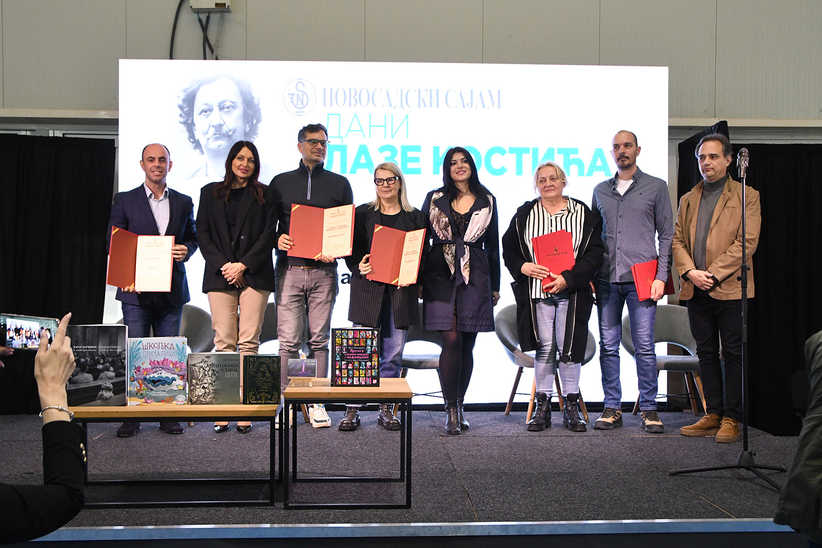 Međunarodni sajam knjiga na Novosadskom sajmu je dobio najlepšu knjigu koja je i nagrađena priznanjem „Zaharija Orfelin”. To su „Priče o slavnim imenima i nadimcima”, Uroša Milivojevića koje je objavio beogradski Kreativni centar, a ilustrovao Boris Kuzmanović. Tako je odlučio žiri koji je radio u sastavu Marija Ristić – predsednica, Mirko Dimić i Nenad Petrin - članovi. Ocenjivali su likovni i grafički izgled knjige, umetnički i likovni utisak, likovnu i grafičku opremu knjige, nivo zanatskog i štamparskog izgleda knjige.. Nagradi za najlepšu knjigu Sajma knjiga „Zaharija Orfelin” dodatnu težinu ove godine daje 300 godina od rođenja ovog srpskog književnika, publiciste, istoričara, a bio je i bakrorezac, prosvetitelj, graver, kaligraf, enolog i pravoslavni teolog. Drugo mesto dele dve knjige – „Školjka pričalica”, autorke Nikolete Novak, objavljena u izdanju Izdavačke kuće Pčelica, ilustrator je Nemanja Ristić i „U kontrasvetlu”, autora Zorana Đorđevića koji je bio i ilustrator, u izdanju Ustanove kulture „Koraci”.Treća nagrada takođe je dodeljena dvema knjigama. Prva je knjiga Hauarda Filipsa Lavkrafta „Boja izvan svemira”, izdavač je ŽIR Izdavaštvo, ilustrator Jelena Ristić. Druga, ne manje važna, je knjiga „Misteriozni stanar” Mari Belok Launds, u izdanju Izdavačke kuće Narator. Ilustratori su Mijat Mijatović i Marko Dinić.Specijalnu nagradu dobio je „Hercegovački ustanak 1875”, autora Svejna Meneslanda. Izdanje je Izdavačke kuće Prometej, grafička oprema knjige - Slađana Novaković. U Hali 1 Novosadskog sajma, u kojoj se i održava Sajam knjiga, priznanja su uručile Marija Ristić, predsednica žirija i Olgica Đurović Miljuš iz Službe za komercijalne poslove Novosadskog sajma.Sajam knjiga traje do ponedeljka, 23. marta. Paralelno se održava i jubilarna 30. međunarodna izložba umetnosti „Art Expo”, dok do sutra traju 20. međunarodni sajam obrazovanja „Putokazi” i Sajam gejminga 2. NS Games & Tech Week.Sutra, u subotu 21. marta ispred Novosadskog sajma, od 12 do 20 časova, biće održana i Vojvođanska berza ukusa.Radno vreme priredbi je od 10 do 20 časova, sem u ponedeljak kada će biti do 16 časova. Ulaz se ne naplaćuje. Prethodna vest Poklon-igra za posetioce – dobitnici, dan treći