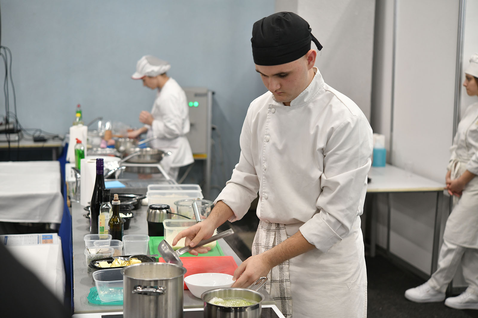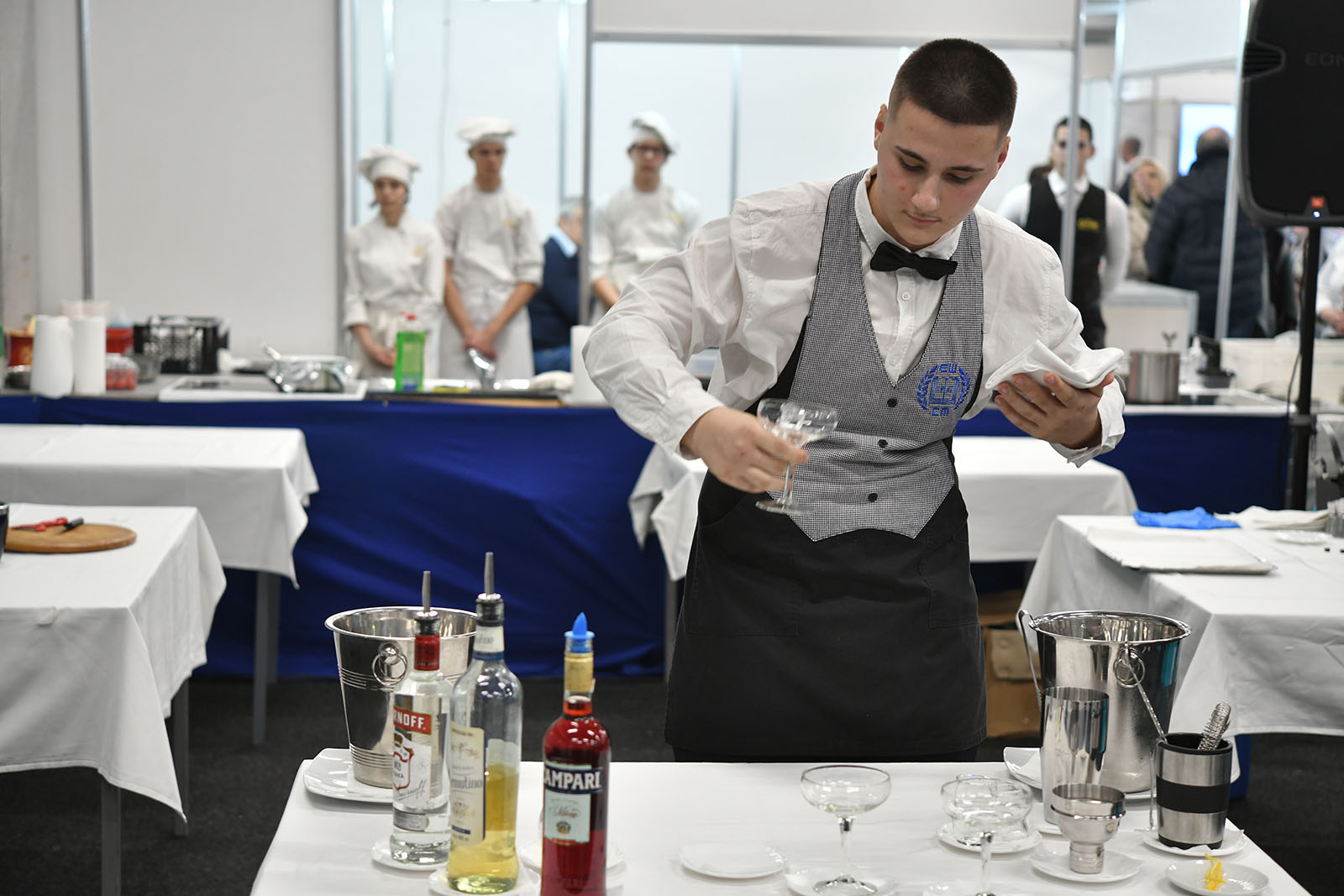 Đaci i profesionalci iz ugostiteljstva i turizma nadmeću se na 35. zboru pod kupolom Novosadskog sajma, demonstrirajući znanje, veštine i savremene trendove. Šta mladi ljudi koji su za budući poziv izrabrali ugostiteljstvo i turizam uče, znaju i primenjuju u praksi vidljivo je pod kupolom Novosadskog sajma gde se, u okviru 35. zbora ugostiteljskiih i turističkih radnika Srbije, odvija takmičenje đaka nekoliko srednjih škola koje obrazuju taj kadar, a nadmetanju su se pridružili i profesionalci. Po rečima profesora ugostiteljstva u Srednjoj školi „Svetozar Miletić“ Zorana Okulića, takmičenje se odvija u nekoliko kategorija, a učestvuje šest ekipa, odnosno 40 takmičara. - Oni pokazuju svoje znanje i umeće u oblastima kuvarstva, usluživanja, barskog poslovanja, recepcijskog poslovanja i karvinga – rekao je Okulić. – Nadmeću se učenici škola iz Novog Sada, Beograda, Šapca i Čajetine, a tu su i takmičari iz Hotela „Putnik“ u Novom Sadu i Restorana „Miročanac“ iz Miroča. Na prostoru gde se takmičenje odvija juče je bilo veoma živo i svi posetioci, ali i znalci u ovom poslu, mogli su da se uvere da budućnost u ugostiteljstvu i turizmu obećava, a to je i cilj ovog nadmetanja - da se prate najnoviji trendovi u ovim oblastima. Učenici-takmičari su, vođeni iskustvom svojih profesora, zainteresovanoj publici i žiriju pokazali šta umeju, a tako će, sigurno je, biti i danas kada se takmičenje završava i kada će biti poznati najbolji. Prethodna vest POČEO 56. MEĐUNARODNI SAJAM TURIZMA - "Turizam nije obaveza već uživanje" Sledeća vest Veliki šampionski pehari za najbolje