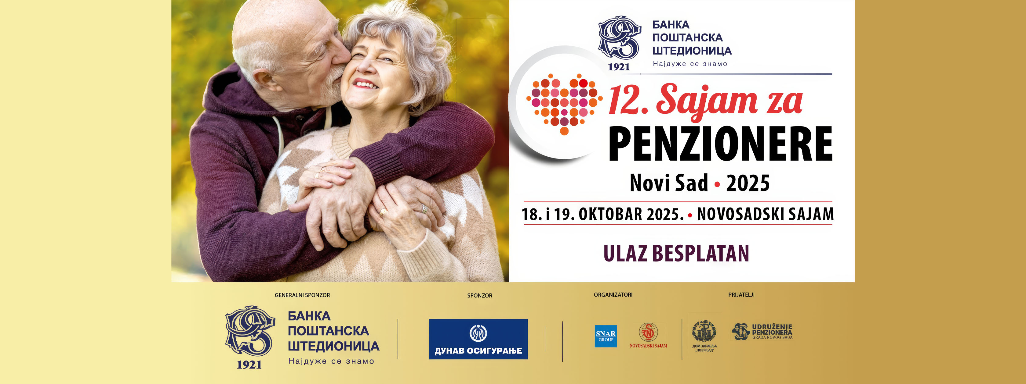 Sajam za penzionere na Novosadskom sajmu okupiće brojne kompanije, udruženja i institucije koje nude proizvode i usluge namenjene najstarijim sugrađanima. Posetioci će imati priliku da se upoznaju sa bogatim programom i ponudom izlagača iz oblasti zdravlja, ishrane, rekreacije, socijalne zaštite, finansija, pravne pomoći i bezbednosti, kao i da učestvuju u besplatnim radionicama, koncertima i zabavnim aktivnostima.