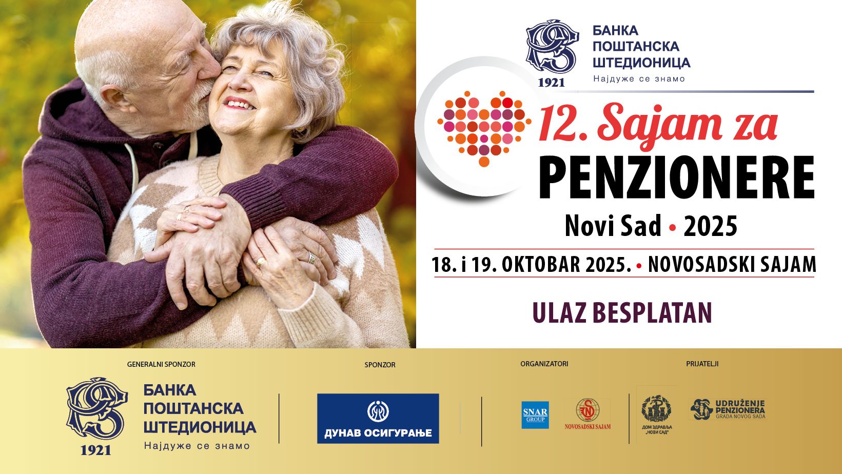 Dvanaesti Sajam za penzionere biće održan u subotu, 18. i nedelju, 19. oktobra, u Auli Novosadskog sajma, pod sloganom „Za bezbrižnu starost“.